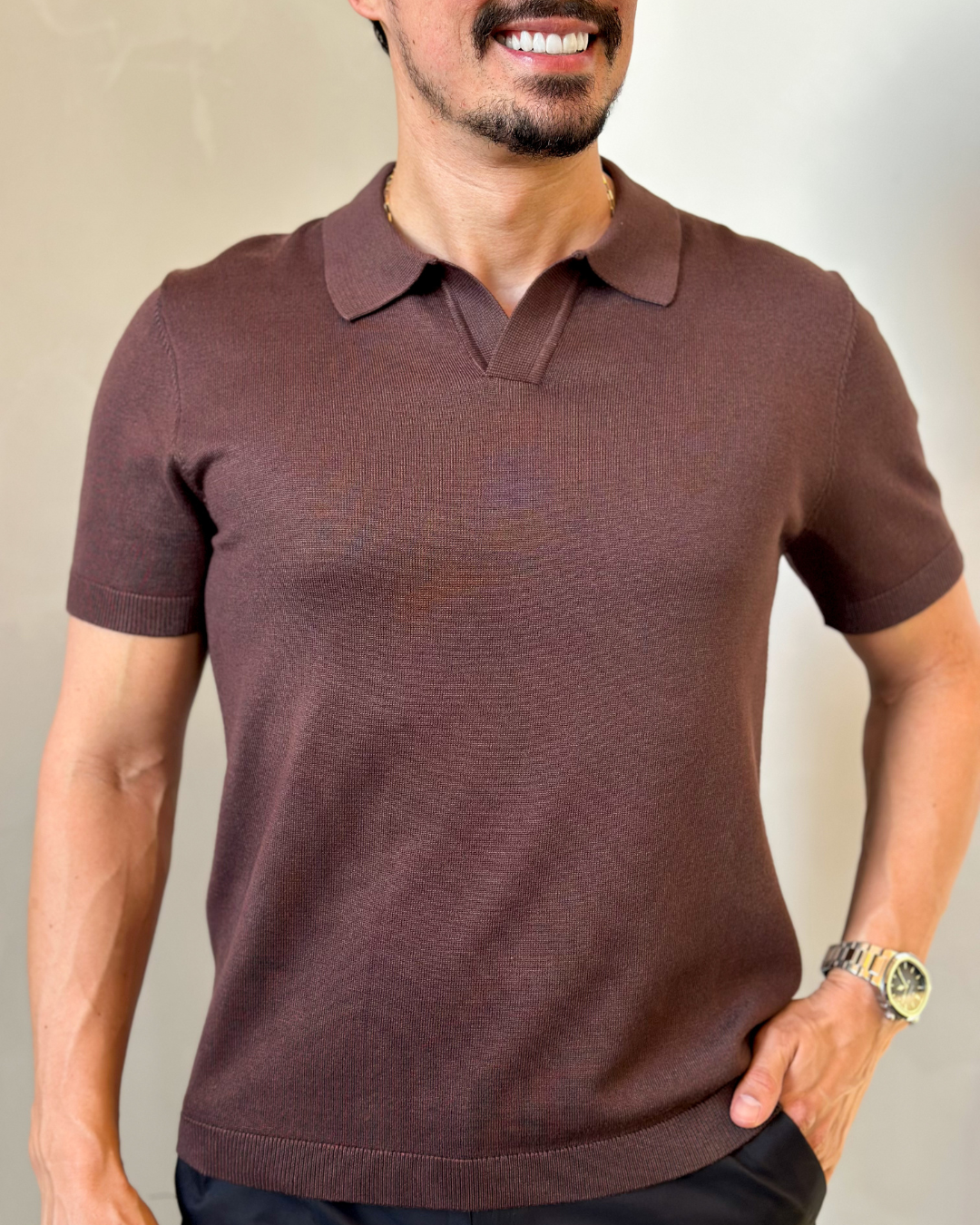 A gola estruturada traz aquele ar sofisticado que transita fácil do casual ao mais arrumado, sem precisar pensar muito.
